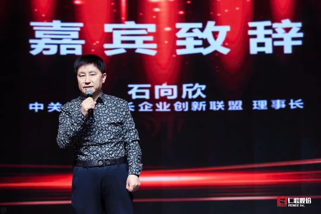 石向欣理事長代表中關(guān)村高成長企業(yè)創(chuàng)新聯(lián)盟贈送仁歌禮物