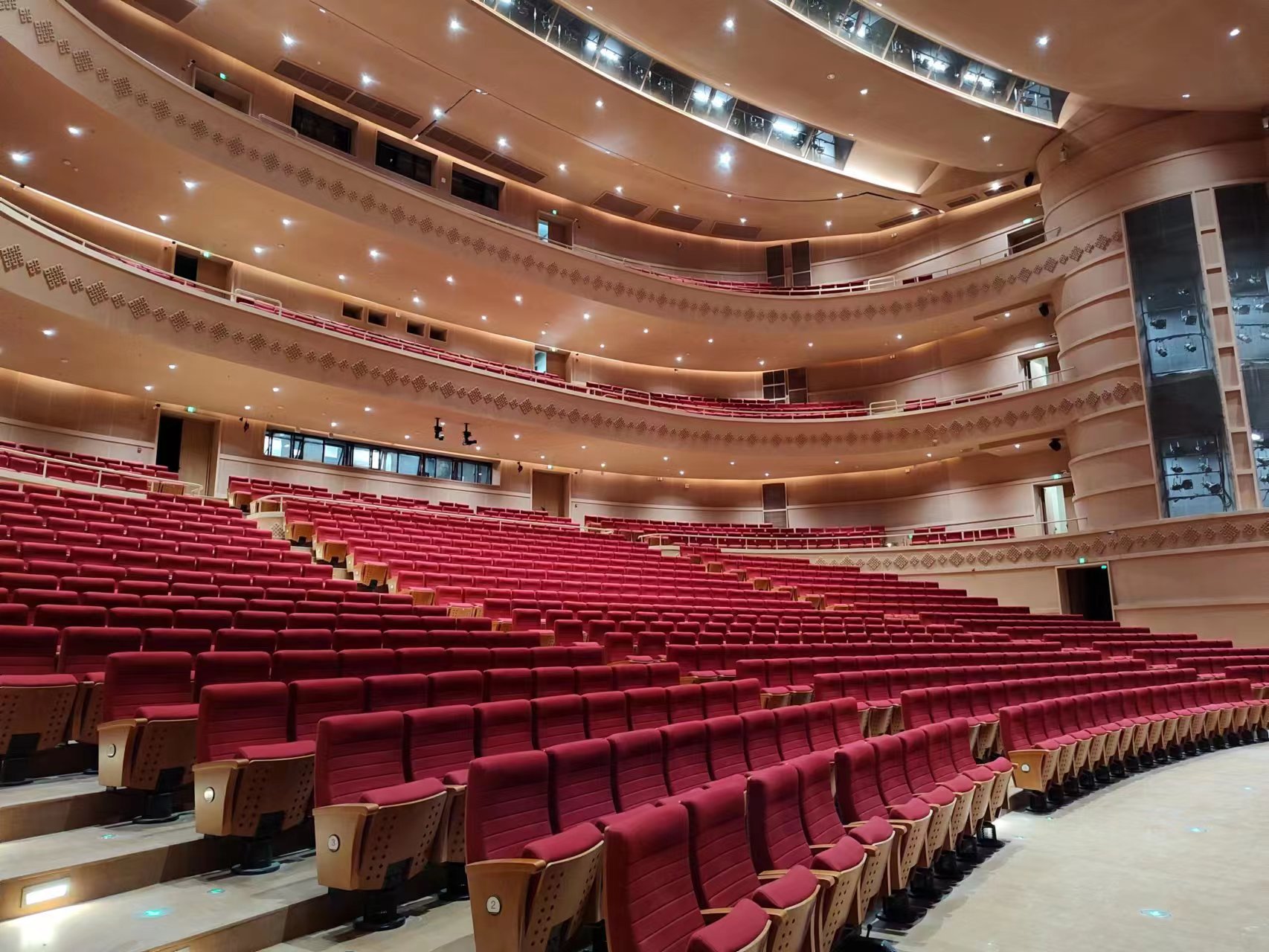 仁歌為西藏大劇院提供舞臺音視頻系統(tǒng)解決方案,包含揚聲器、音頻控制和傳輸、音頻信號源、演出視頻監(jiān)控及顯示、內(nèi)部通話及舞臺監(jiān)督等系統(tǒng)。大劇場臺口寬度23.9米、演出時寬度18米,臺口高度12米,包含池座、一層樓座、二層樓座、三層樓座,座位數(shù)約1500座。