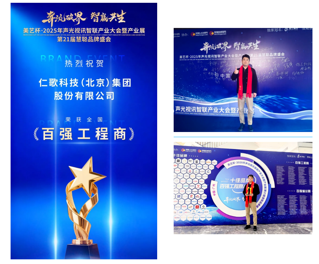 近日,備受業(yè)界矚目的2025年度聲光視訊行業(yè)品牌評選結(jié)果正式揭曉。仁歌集團(tuán)憑借其深厚的行業(yè)積淀、卓越的工程品質(zhì)、出色的集成能力與客戶至上的服務(wù)理念,成功入選“百強(qiáng)工程商”,仁歌深圳公司總經(jīng)理郭磊受邀出席。這一榮譽(yù),不僅是對仁歌集團(tuán)在單個年度項目執(zhí)行能力的肯定,更是對其成立三十年來,始終秉持匠心精神,致力于為客戶提供聲光視訊專業(yè)服務(wù)的褒獎。
