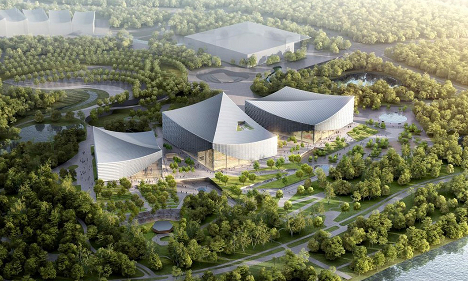 該項目位于北京城市副中心綠心森林公園西北角,建筑面積約為12.5萬平方米,包含歌劇院、音樂廳、戲劇場、露天劇場以及排練廳、藝術(shù)展廳等公共服務(wù)用房。