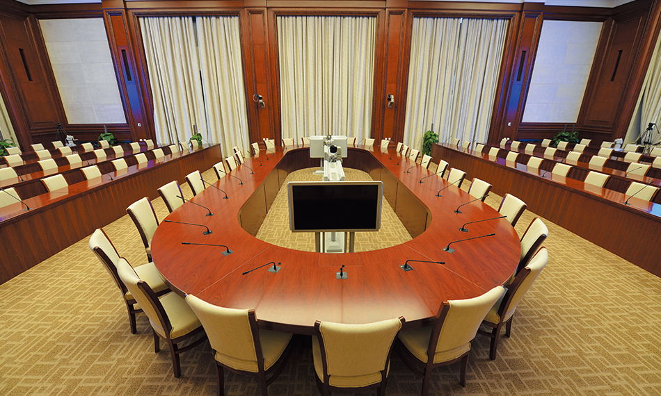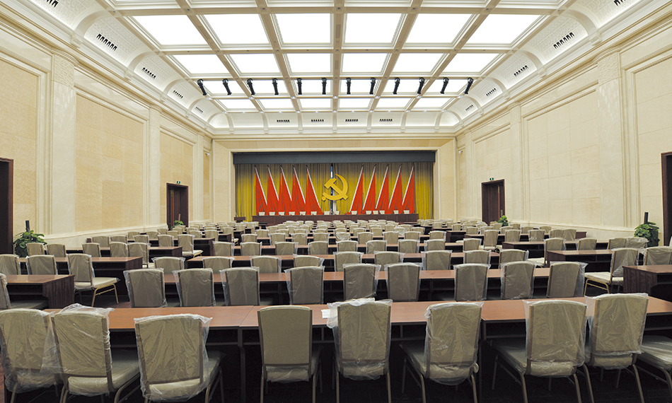 位于北京東城區(qū),經(jīng)過半個(gè)多世紀(jì)的風(fēng)雨洗禮,見證了北京的輝煌與成就的同時(shí),也經(jīng)受著歲月地雕琢,為了能更好的開展日常政務(wù)活動(dòng),為社會(huì)公眾提供更多優(yōu)質(zhì)的服務(wù),信息智能化系統(tǒng)需改造升級(jí)。新系統(tǒng)要求要滿足召開市委常委會(huì)、專題會(huì)、中心理論組學(xué)習(xí)、大型報(bào)告會(huì)、電視電話會(huì)等日常會(huì)議智能化需求,此外還要滿足貴賓接待、新聞發(fā)布、簽字儀式、資料放映、舞臺(tái)演出等要求,并實(shí)現(xiàn)高清視頻、高保真還音、大屏幕顯示、信號(hào)調(diào)度、觸摸互動(dòng)、電影放映、會(huì)場(chǎng)監(jiān)看、錄音錄像、視頻會(huì)議、同聲傳譯等功能,能夠通過網(wǎng)絡(luò)化管理和智能集中控制。