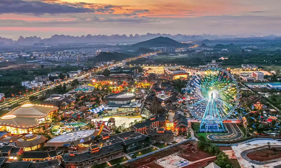 項目位于桂林市雁山區(qū)與七星區(qū),是廣西文旅融合發(fā)展的龍頭項目,以桂林山水文化和民族文化為設計靈感,包含海世界、水世界、歡樂部等樂園,同時還有商業(yè)小鎮(zhèn)、劇場和酒店配套設施。仁歌股份負責樂園和小鎮(zhèn)區(qū)域的夜游燈光、音響及視頻設備的供貨、安裝、調試及最終效果呈現(xiàn)的編程。