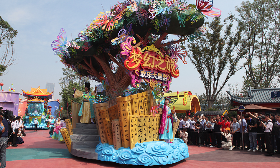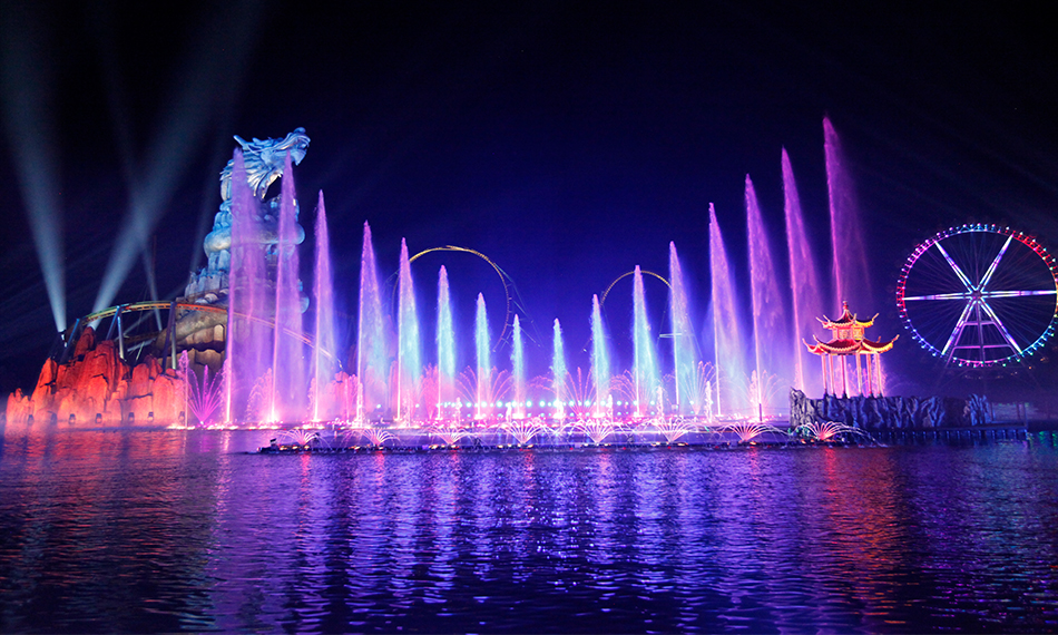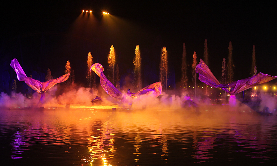 合肥萬達主題樂園是合肥萬達城的重要組成部分,占地40公頃,園內分為徽州古韻區(qū)、梨園春秋區(qū)、歡樂水鄉(xiāng)區(qū)、巢州古城區(qū)、淝水之戰(zhàn)區(qū)和夢蝶仙境區(qū)。仁歌承建了主題樂園里面淝水劇場(2000座)、夢蝶劇場(525座)、大湖秀、花車巡游等區(qū)域的音響、燈光、視頻設備一體化工程。其中大湖秀更是在大型水面上以白龍島為背景,結合安徽著名的巢湖文化黃梅戲為主題,融合了人、水、聲、光、電等元素的實景演出,采用了演藝級別舞臺燈光、音響、投影等專業(yè)設備。自項目竣工開園以來已為近百萬觀眾奉獻了精彩的視聽盛宴,帶動了當?shù)匚幕糜萎a業(yè)的發(fā)展。
