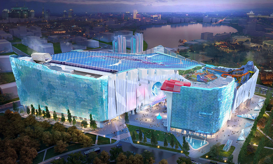 該項(xiàng)目主要分為室內(nèi)滑雪場(chǎng)、室內(nèi)外嘻水中心、度假酒店、精品酒店四個(gè)部分和商業(yè)配套,下設(shè)一層地下室,總建筑面積約30萬(wàn)平方米。仁歌負(fù)責(zé)該項(xiàng)目的五個(gè)區(qū)域:包含布谷鳥(niǎo)舞臺(tái)、洞穴探險(xiǎn)、登山體驗(yàn)、沖浪池舞臺(tái)和火山特效,共涉及舞臺(tái)燈光,音響,互動(dòng)視頻,水特效等系統(tǒng)內(nèi)容。
